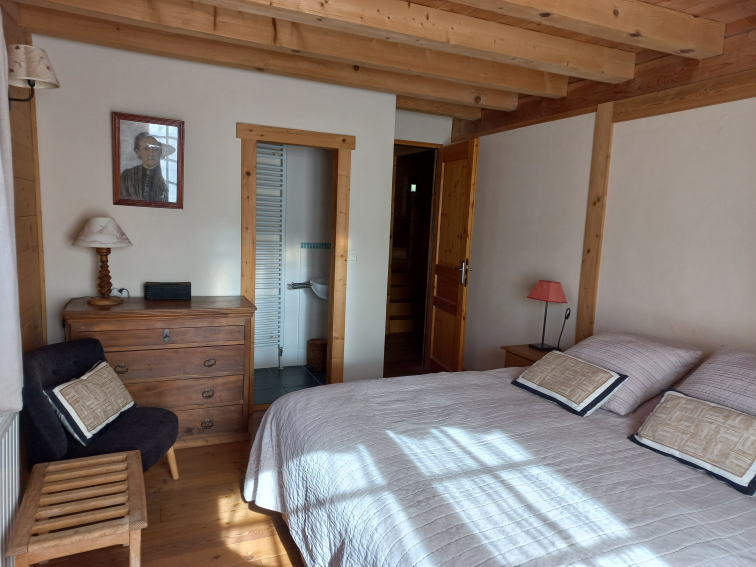 Its location is ideal in the heart of the resort-village of Notre Dame de Bellecombe, in a quiet area (secondary road) facing south with a clear view of the mountains, the church and the ice rink (petanque court in summer). The chalet is surrounded by a secure enclosed garden, flanked by a terrace on the kitchen side.