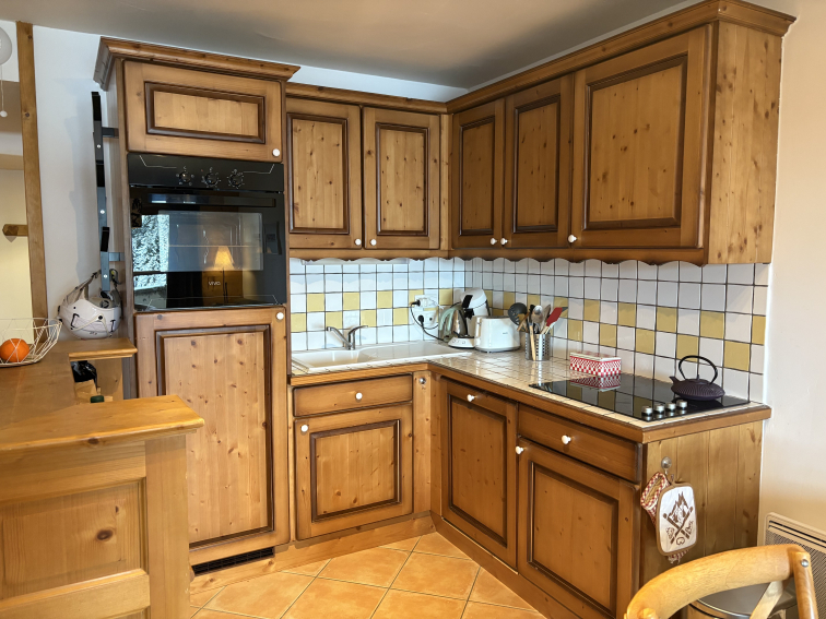 The open kitchen is fully equipped (electric oven, fridge, dish-washer, ceramic hob etc. )