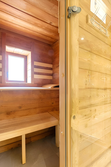- Garden level: Ski room with shoe dryer, billiard table, bar, darts, sauna for 5 people, 1 bedroom of 12m² (with a 160x200cm bed), its bathroom and a separate WC.