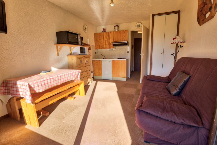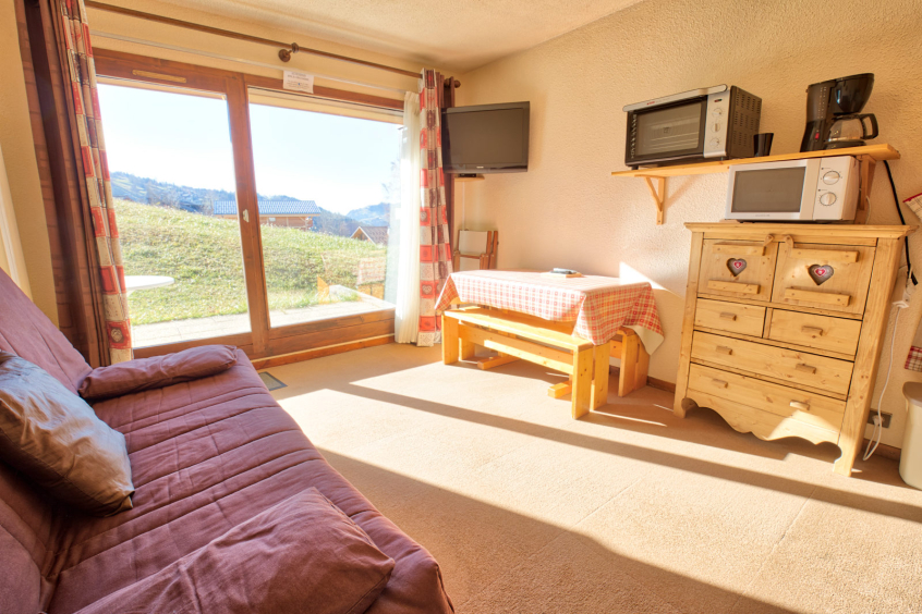 20sqm studio for four persons located in the quiet neighbourhood Les Biolles, close to the center. On the garden floor with a south west facing exposure, you will love the view on the Mont charvin.