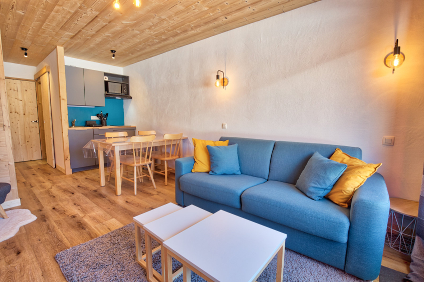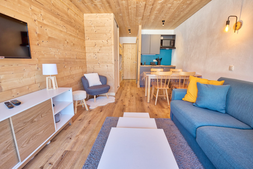 Studio for two to four people with a surface area of 23 m², completely renovated, a stone's throw from the ski slopes. You will appreciate its comfort and its western exposure which will offer you beautiful sunsets on the mountains.