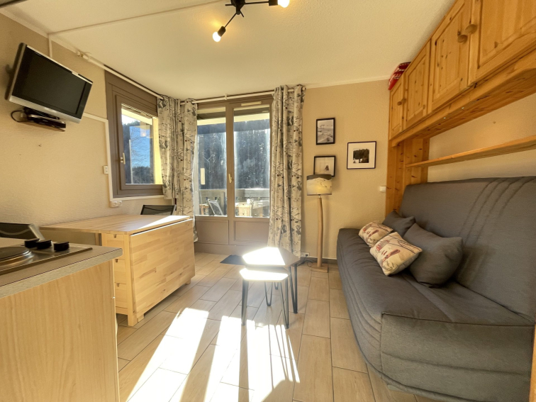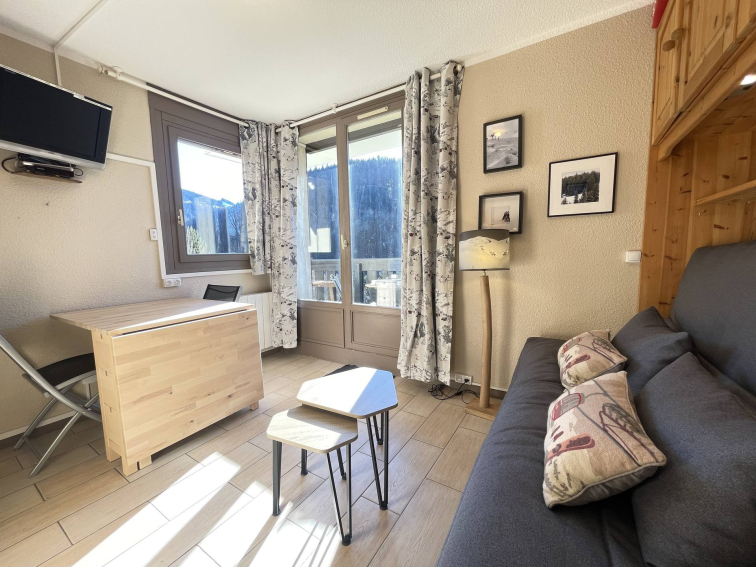 Studio for four people in the Les Adrelles residence with views of Mont Charvin and the valley. Located in the village of Notre Dame de Bellecombe, all amenities are within walking distance, and the playground and ski bus stop are 100m away.