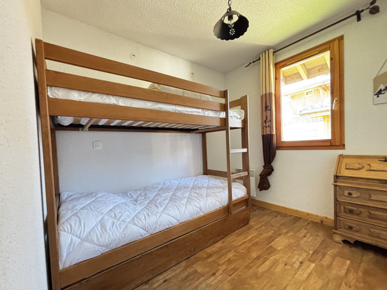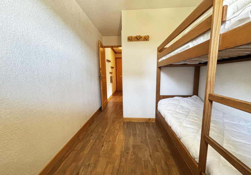 A first bedroom with a 2*90 cm bunk bed + a 1*90 cm pull-out bed and storage space