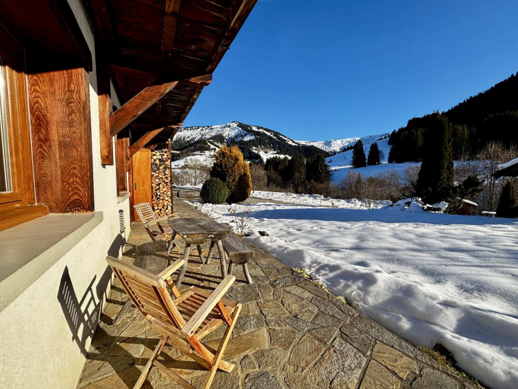 Charming, cozy 75 m² apartment, ideal for up to 6 people. Located on the garden level, it features a south-facing terrace with unobstructed views, and a second west-facing terrace with views of Mont Charvin.