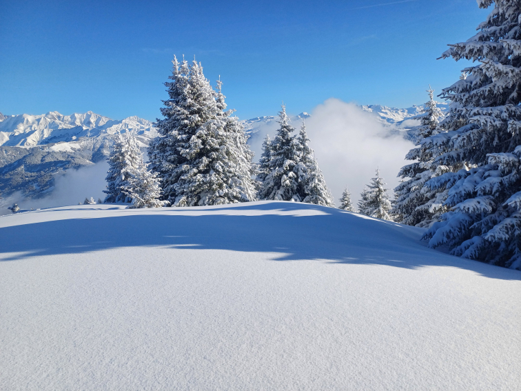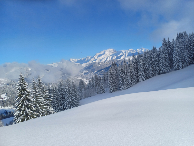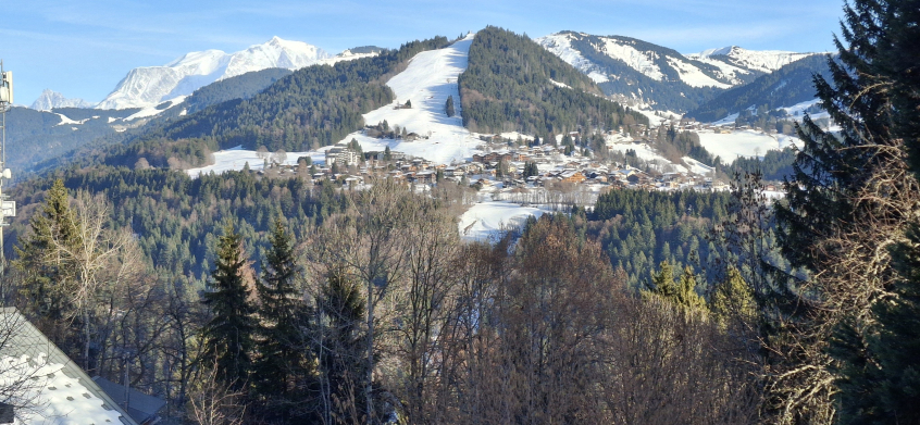 Très ensoleillé (versant sud), avec vue sur la chaine du mont-blanc et la vallée de Megève.