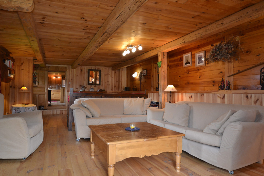 Appartement de 145m² dans une ferme rénovée, pour huit personnes. Situé en rez de chaussée, vous apprécierez sa grande terrasse Est, et sa vue exceptionnelle sur le Mont Charvin et la vallée.