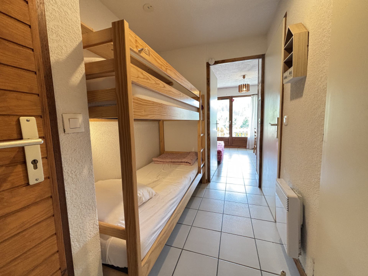- Couchages : une chambre avec un lit double (140), un coin montagne avec lits superposés (2x90), séjour avec un canapé-lit (140). Literie équipée de couettes.