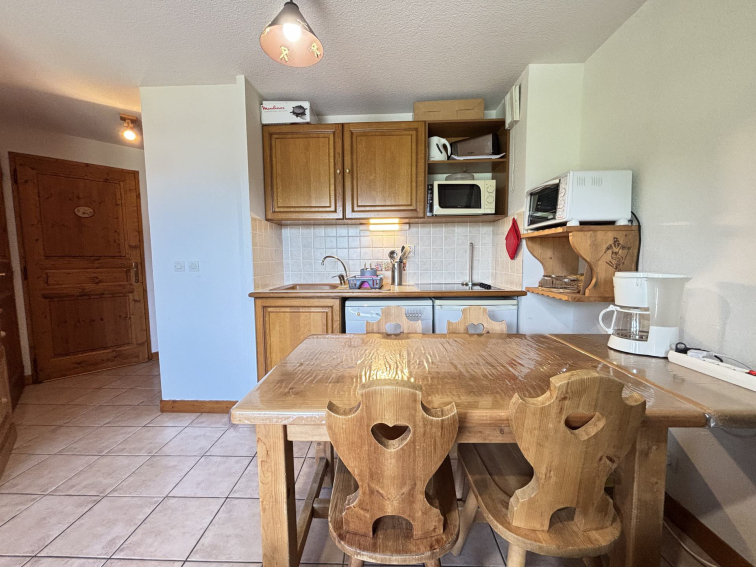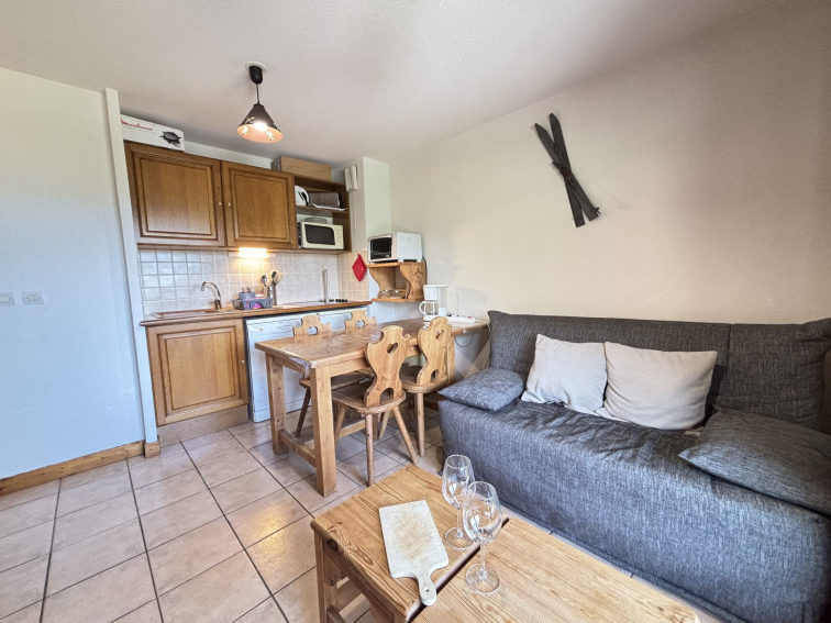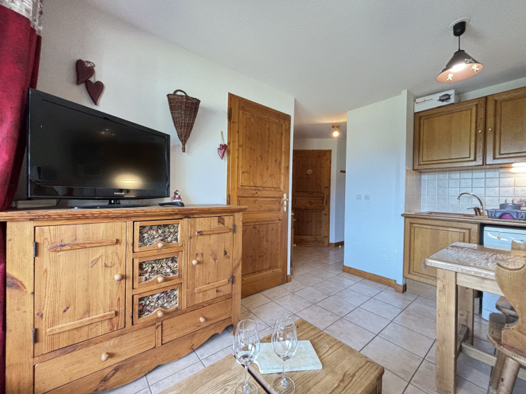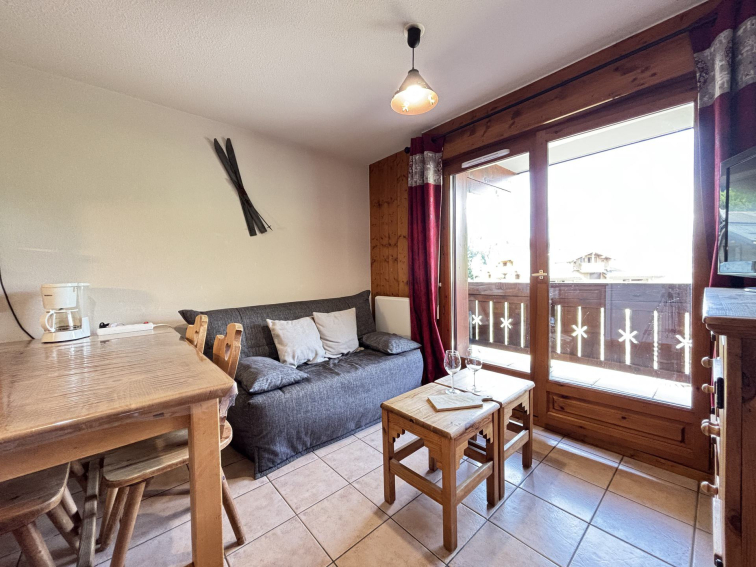 Chaleureux appartement de 26m² pour quatre à six personnes au premier étage de la résidence. Son balcon en exposition ouest vous offre de superbes vues sur le Mont Charvin et la vallée. En plus, il est au pied des pistes de skis et des départs de randonnées!