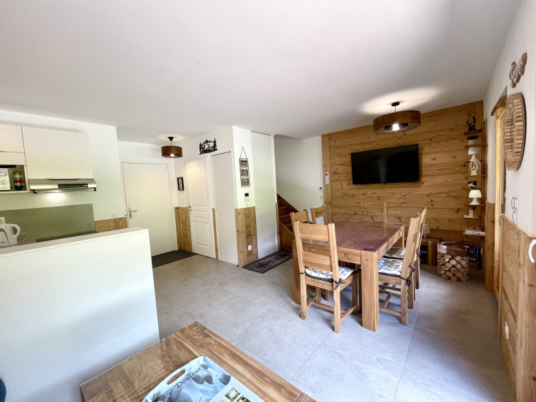 Face au télésiège du Mont Rond, appartement neuf en duplex à 1350m d'altitude, pour quatre à six voyageurs. D'une surface de 51m², il comporte deux terrasses en exposition Sud Est avec vue sur les montagnes et les pistes.