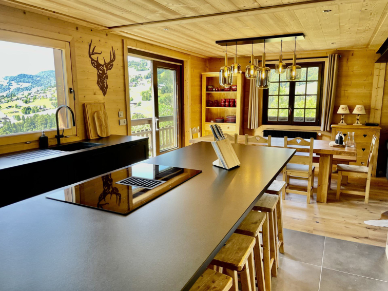 en exposition Ouest avec une très belle terrasse. Avec son ambiance cosy, ce chalet est parfait pour vos prochaines vacances, afin d'accueillir 8 à 10 personnes.