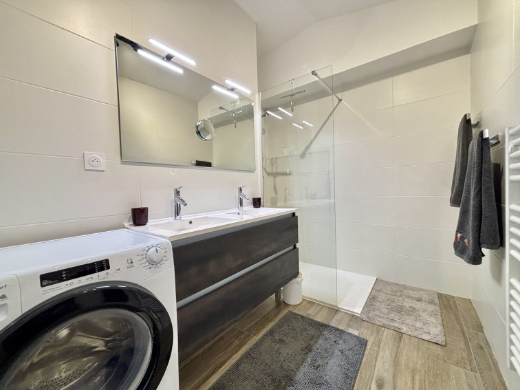 - Une salle d'eau avec double vasque et lave-linge