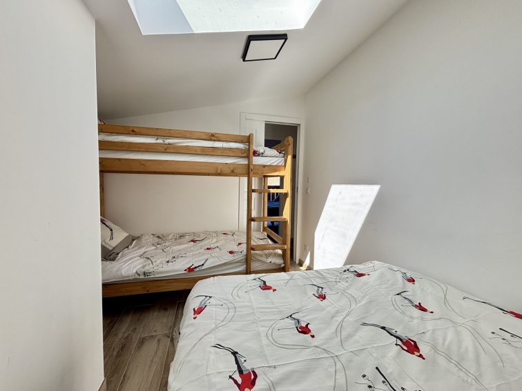 - Une chambre avec placards, un lit double (140 cm) et lits superposés (2 * 90 cm)