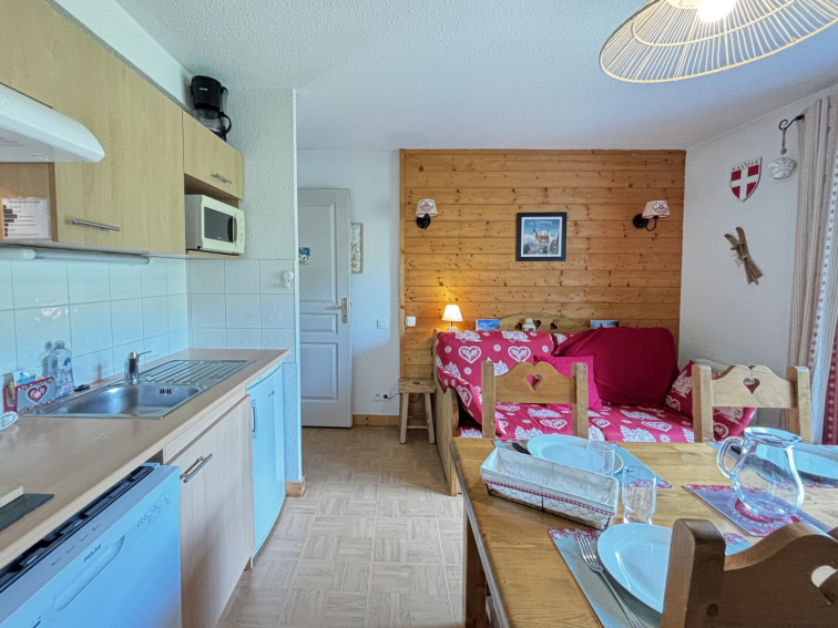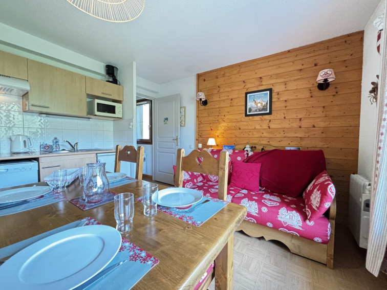 Charmant 2 pièces de 28 m², idéal pour accueillir jusqu?à 4 personnes, situé au 1er étage d?une résidence chaleureuse et au pied des pistes de l?Espace Diamant, à proximité immédiate de l?école de ski. L?appartement dispose d?un balcon orienté nord-ouest offrant une vue dégagée sur les montagnes.