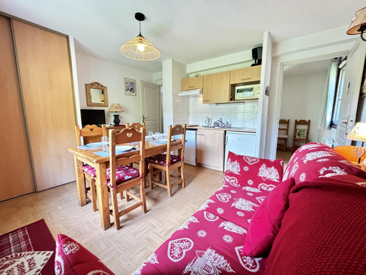 En été, vous profiterez de nombreux sentiers de randonnée et circuits VTT, accessibles dès la résidence. Le télésiège des Evettes, ouvert deux jours par semaine, permet d?accéder à des panoramas grandioses sur la chaîne des Aravis. Le plan d?eau de Flumet et sa base de loisirs, situés à 3 km, sont parfaits pour des activités en famille ou entre amis.