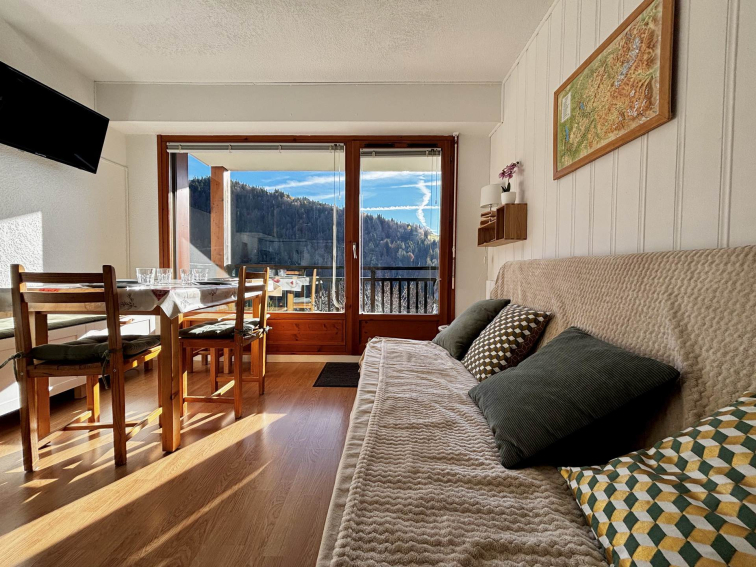 NOTRE AVIS : Appartement fonctionnel rénové avec goût, avec une bonne exposition. Au calme et proche de toutes les commodités, idéal pour vos séjours à la montagne.