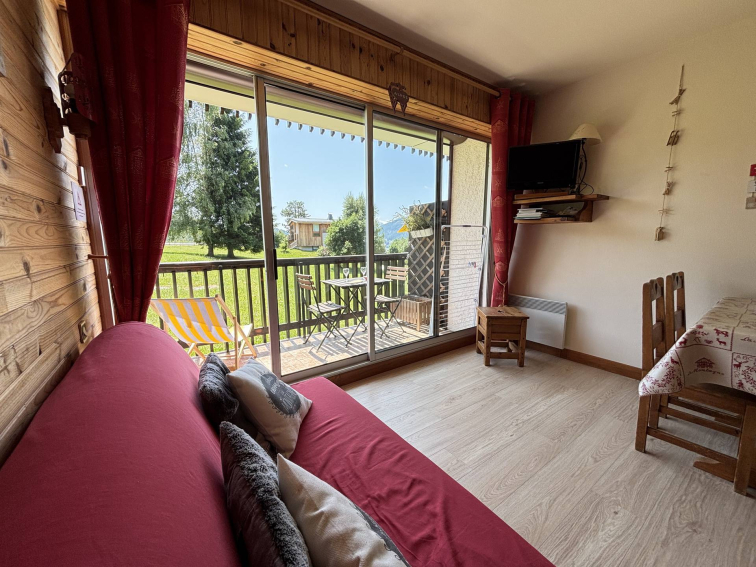 Ce studio d'environ 18 m² se trouve au pied des pistes de l'Espace Diamant. Il dispose d'un balcon orienté Sud, idéal pour profiter du soleil tout au long de la journée. Conçu pour accueillir jusq'uà quatre voyageurs. Situé en rez-de-jardin, l'appartement offre une vue dégagée sur le Mont Charvin.