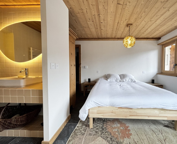 Ce niveau s'ouvre sur un balcon exposé Sud-Ouest, baigné de lumière naturelle et idéal pour les moments de détente face au paysage alpin.