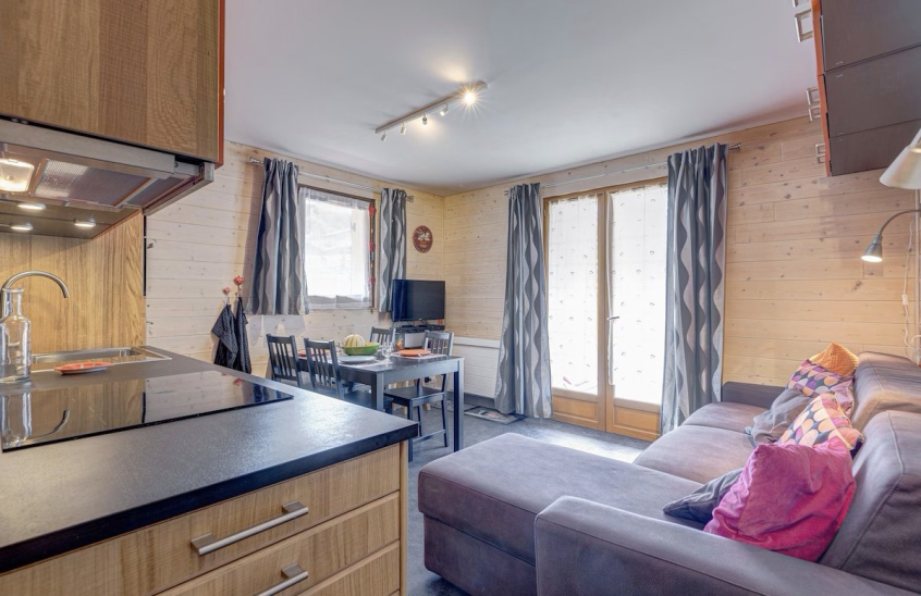 Il a été entièrement rénové, est prévu pour 4 et se situe au rez de chaussée de la Résidence La Logère.