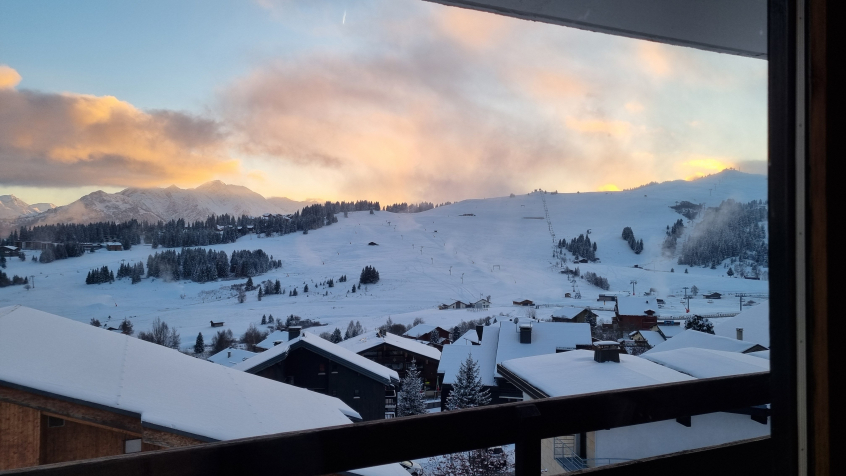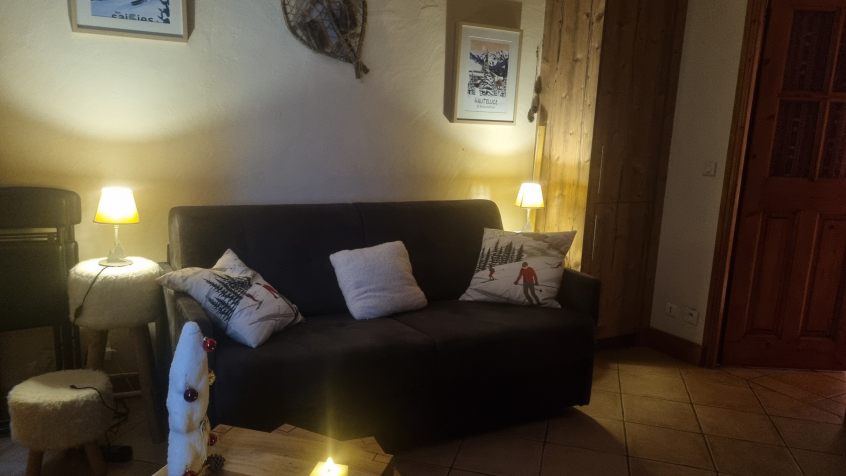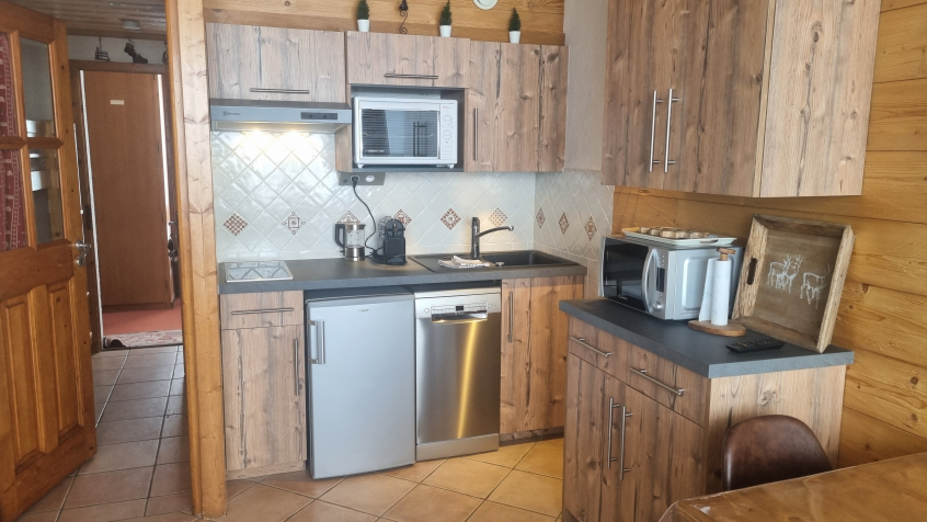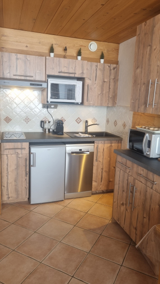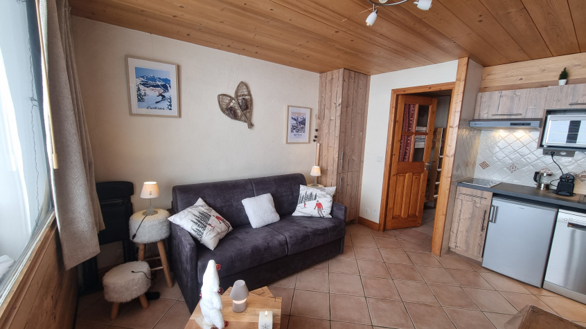 CENTRE STATION Classement 2*. Studio cosy -coin montagne (lit supp dans entrée fermée)-. Canapé lit "Rapido" 140x200 - Plaque cuisson VITRO- Lave-vaisselle, micro-ondes, mini-four, Nespresso, appareils (crêpes,raclette, fondue, croque-monsieur) TV, radio, fer à repasser, sèche-cheveux, pelle à neige.Casier à skis Matériel Bébé- Plein sud, vue degagée. Loggia + table extérieur.